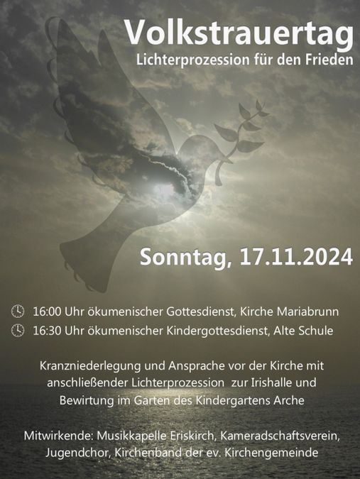 Veröffentlicht am: 14.11.2024 Volkstrauertag: Lichterprozession für den Frieden Volkstrauertag: Lichterprozession für den Frieden Allgemein