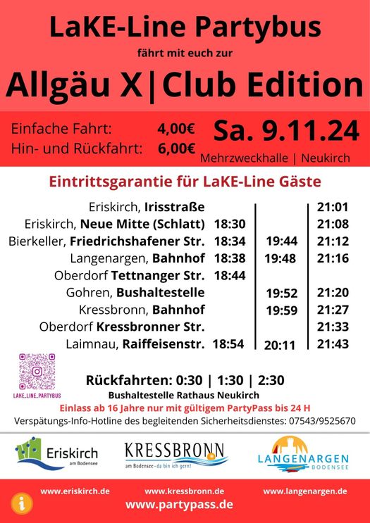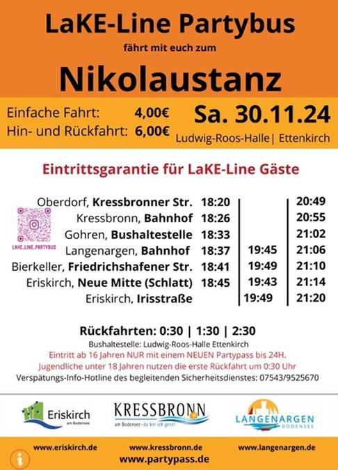 Am Samstag, 30.11.2024 findet in Ettenkirch ein Nikolaustanz statt. Der Partybus „LaKE-Line“ bringt Jugendliche…
